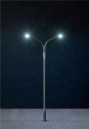 De Faller LED straatverlichting is de perfecte toevoeging aan je modelspoorlandschap of stadsscène. Met dit bouwpakket van 3 moderne gebogen straatlantaarns met twee armen, heb je de mogelijkheid om straten en industriegebieden tot leven te brengen. De masten zijn gemaakt van duurzaam metaal en de hoogte van de lantaarns kan naar wens worden aangepast.