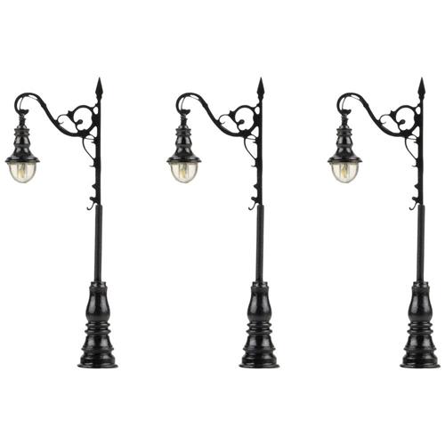 Verlicht uw modelspoorbaan op een historische en sfeervolle manier met de Faller N Gebogen straatlantaarn. Dit prachtige enkele kant-en-klare model (272131) wordt geleverd in een set van 3 stuks en is perfect voor het verlichten van oude steden, parken en historische taferelen. De smeedijzeren lantaarn is gedetailleerd versierd, waardoor het een unieke charme uitstraalt.