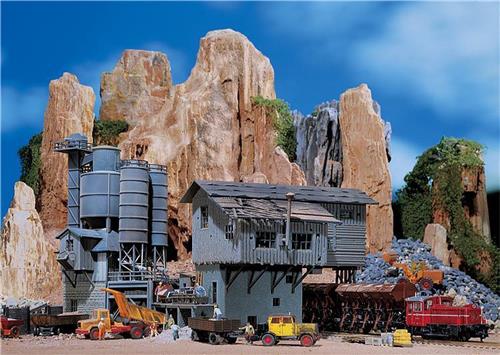 De Faller Oude Steen Overslag is een prachtig model op schaal H0, ideaal voor liefhebbers van modelspoorwegen. Dit gedetailleerde model is van het merk Faller en is voorzien van een enkelsporige doorgang voor het beladen van wagens, hoewel deze functie niet echt operationeel is. De overslag heeft een doorrijhoogte van 61 mm en is perfect om jouw modelspoorbaan tot leven te brengen.
