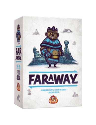 Faraway is een spannend kaartspel dat je meeneemt naar het mysterieuze continent Alula, waar de natuur en landschappen voortdurend veranderen. Met 4 verschillende covers in de kleuren rood, blauw, groen en geel, word je verrast met een assorti variant. Verken Alula door op onderzoek uit te gaan en verzamel hulpbronnen om je zoektochten te voltooien. Punten behaal je na elke afgeronde tocht, en het unieke puntensysteem zorgt voor een strategische twist. Speel in 8 rondes regiokaarten van links naar rechts, en tel de punten aan het einde van het spel van rechts naar links.