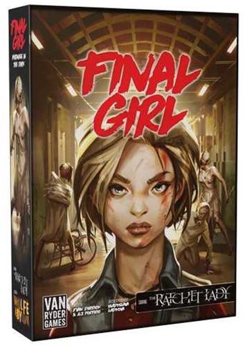No matter where you go in Wolfe Asylum, noises and voices always seem to echo. It is particularly frightening when one of the residents cackles or a group of them cheer during a game of them cheer during a game of bingo in the common room. Those noises are nothing, however, compared to the blood-curdling shrieks of terror generated by the evil brand of medical "care" the Rachet Lady is giving the asylum's residents and staff. What do you do when the maniacs come? The Ratchet Lady is in a mood. Shes performing her own brand of therapy on the victims, turning them into bloodthirsty maniacs. Youll have to decide if you want to try to calm them down or kill them before they can kill you. But the only way to really stop them will be to put down the Ratchet Lady herself. Wolfe Asylum seems harmless and like a typical mental institution to outsiders. Inside lies something very different. Theres medicine and other drugs inside that can, shall we say, amplify your abilities. But at what cost? When the choice is death or a potential side effect, it really isnt a choice at all. Down the hatch! Each Feature Film Box is double-sided, with amazingly illustrated covers on the front AND back. Not only that, but the magnetically attached box covers are removable, with the reverse of each functioning as the Killer and Location boards respectively.