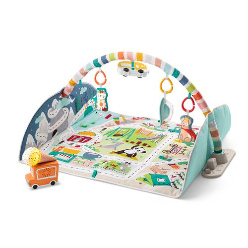 | Verpakkingsinhoud | 1 speelmat, 1 speelgoedboog, 3 voertuigen, 2 zachte speeltjes, 2 speelonderdelen |