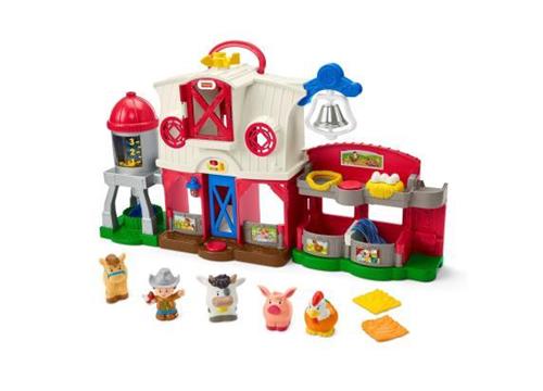 Boer Jed is altijd druk bezig met de verzorging van zijn dieren op de Fisher-Price Little People boerderij. Hij kan wel wat hulp gebruiken van kleine boeren die leren zorgen voor hun dierenvriendjes. Door op de ontdekkingsknop te drukken, ontdekken kinderen wat er allemaal gebeurt op de boerderij en horen ze grappige liedjes en zinnetjes. Het openen van het hooiluik in de schuur activeert nog meer geluiden en zinnetjes, terwijl het omkeren van de silo het maïs laat vallen.
