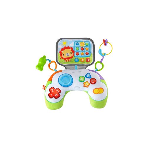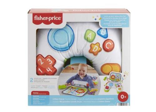 Met de Minigamer Buikligtrainer van Fisher-Price is het tijd om op de buik te spelen. Deze zachte buikligtrainer ondersteunt je pasgeboren baby en zorgt ervoor dat hij zich op zijn gemak voelt terwijl hij speelt met het ritselend 'scherm', het headset-klik-klakspeeltje en de energiedrankratelaar die aan de buikligtrainer vastzit. Jouw minigamer kan de grofmotorische vaardigheden versterken en de zintuigen prikkelen met leuke geluiden en texturen tijdens het speelkwartiertje. De buikligtrainer kan eenvoudig in de wasmachine worden schoongemaakt. Voor pasgeboren baby's en ouder.