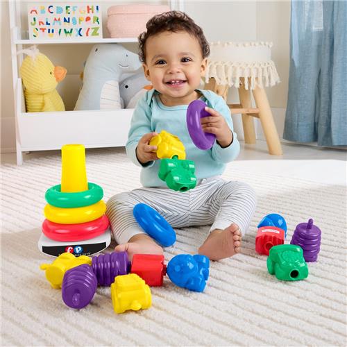 Ontdek de vrolijke wereld van de Fisher-Price Stapeltoren en Klikkralen Set, een perfecte combinatie van klassiek speelgoed voor jouw kleintje! Deze set, ter ere van de 80ste verjaardag van Mattel, nodigt uit tot eindeloos speelgoedplezier. De iconische stapeltoren bevat vijf kleurrijke ringen die speciaal ontworpen zijn voor kleine handjes. Laat je baby grijpen, schudden en stapelen van groot naar klein, terwijl de bovenste ring met kleurrijke rammelkralen extra geluid en visuele stimulatie toevoegt.
