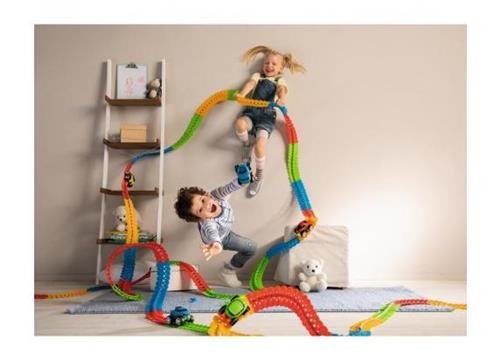 Met de FleXtreme Discovery set racebaan van SMOBY kunnen kinderen vanaf 4 jaar genieten van eindeloos speelplezier. Deze flexibele circuit set bevat maar liefst 184 baandelen, waardoor kinderen creatief kunnen zijn en telkens nieuwe banen kunnen creëren. De baan heeft een lengte van 4.40 meter en is gemaakt van hoogwaardig kunststof in een kleurrijk ontwerp.