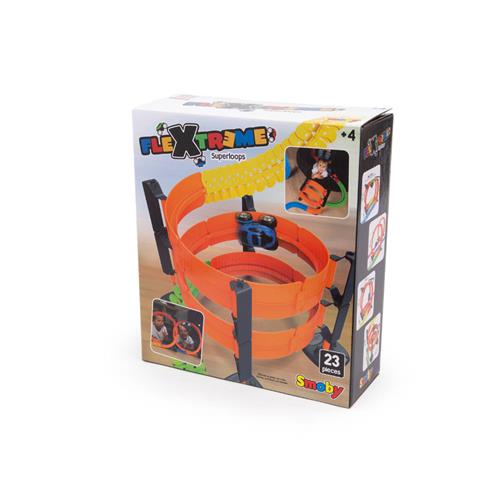 Met de FleXtreme Superlooping racebaan haal je een flexibel circuit in huis dat geschikt is voor kinderen vanaf 4 jaar. De racebaan is een spannend onderdeel van de FleXtreme set van SMOBY en biedt urenlang speelplezier. De Superlooping baan bestaat uit 23 onderdelen en heeft een schaal van 1:64. Met een lengte van 10.5 cm, een breedte van 28 cm, en een hoogte van 32 cm is deze baan compact en makkelijk op te bergen.