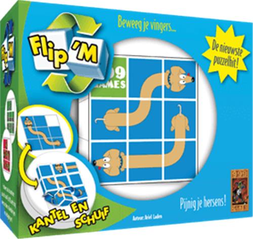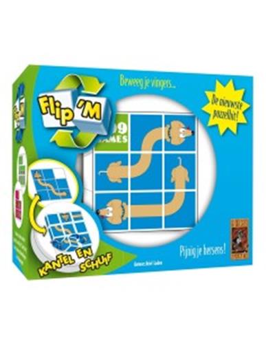 Flip 'm: De Tekkel Breinbreker is een spannende puzzel waarbij je een uitdaging kiest en deze met de dobbelstenen probeert te maken. Daarbij mag je ze uitsluitend schuiven en kantelen. Je kunt Flip 'm solitair spelen, maar als een andere speler ook een exemplaar heeft, kun je het tegen elkaar opnemen! De puzzel is verkrijgbaar in 4 varianten, elk met 36 uitdagingen in 3 moeilijkheidsgradaties.