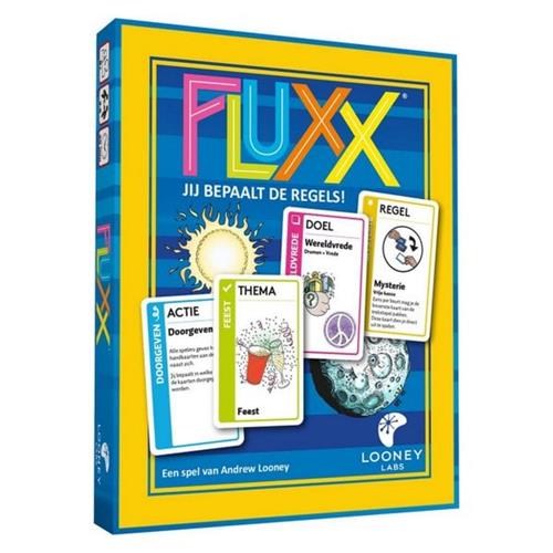 Vernieuwde Nederlandse editie van het supersnelle kaartspel Fluxx, gebaseerd op Fluxx 5.0 Jij bepaalt zelf de regels: trek een kaart en speel een kaart. Zo simpel zijn de basisregels van het kaartspel Fluxx Een kaart trekken en een kaart spelen, dat zijn de regels om mee te beginnen. Welke regels daarna in het spel komen, bepaal je zelf. Verander het doel van het spel met je doelkaarten en voeg regels toe met nieuwe regelkaarten. Gebruik actiekaarten om andere spelers dwars te zitten en verzamel themakaarten om je doel te bereiken. Voldoe aan het doel en win.
