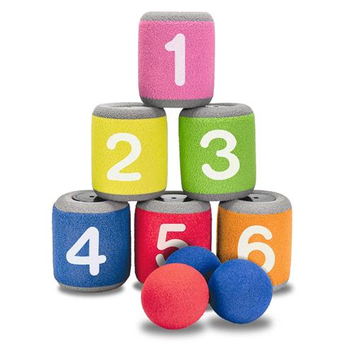 Stapel de blikjes op tot een piramide en ontdek wie het beste kan mikken! Het zachte materiaal is geschikt voor binnen en buiten. Met 6 genummerde blikjes van foam (1-6) en 3 ballen van foam wordt het spel nog leuker. Dit behendigheidsspel van Tactic is perfect voor kinderen vanaf 3 jaar.