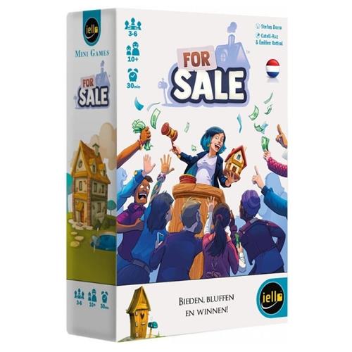 For Sale - Kaartspel heeft een update gekregen. In deze nieuwe editie zijn de box en de kaarten aangepast, terwijl de kartonnen muntjes zijn vervangen door bankbiljetten. Bieden, bluffen en winnen: zorg in dit spel dat je de rijkste makelaar wordt door op huizen te bieden en deze weer te verkopen tegen de meest rendabele prijs. Probeer de waarde van de huizen zo goed mogelijk in te schatten, te anticiperen op je tegenstanders en hen te dwingen om beslissingen te nemen die voor jou gunstig zijn. Aan het einde van het spel wordt de speler met de meeste geldwaarde aan bankbiljetten (oftewel de meest welvarende makelaar) tot winnaar uitgeroepen.