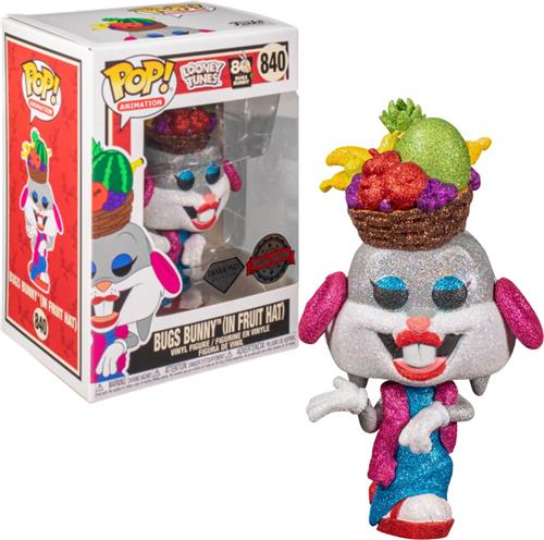 De Funko POP! Animation Bugs In Fruit Hat DIAMOND 840 is een exclusieve Looney Tunes editie van Bugs Bunny. Dit unieke speelfiguur toont Bugs Bunny met een grappige fruit hoed, en is een must-have voor verzamelaars van Funko POP! figuren.