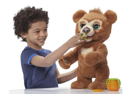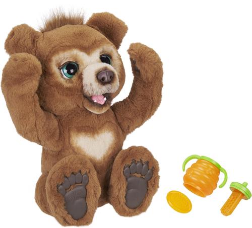 furReal Cubby, de nieuwsgierige interactieve knuffelbeer, is een droomvriendje voor kinderen vanaf vier jaar. Een vriendje dat altijd met plezier mee op avontuur gaat of aan het eind van de dag tegen je aan kruipt voor een knuffel. Cubby heeft een 3 in 1 accessoire om hem eten en drinken te geven en om zijn vacht te borstelen. Hij is een nieuwsgierig welpje dat graag wordt opgetild en geknuffeld (hij knuffelt je terug!), kiekeboe speelt en zelfs af en toe een dansje waagt. En niet te vergeten: etenstijd! Geef hem zijn fles en luister naar zijn eetgeluidjes. Hij is ook een echte kletskous als je tegen hem praat dan brabbelt hij terug. In slaapmodus doet deze schattige beer zijn oogjes dicht, maakt slaapgeluidjes en speelt een van zijn vijf minuten durende slaapliedjes. Welterusten Cubby! Zijn expressieve gezichtje heeft bewegende ogen, neus en mond een superschattig welpje. Met meer dan 100 geluid- en bewegingscombinaties is dit écht een droomvriendje voor kinderen!