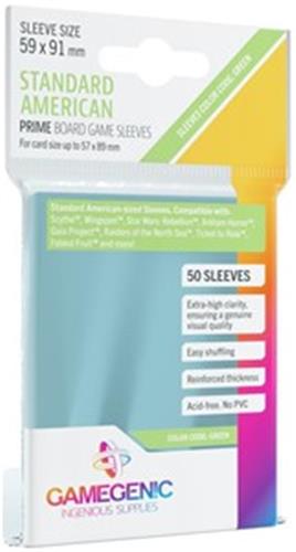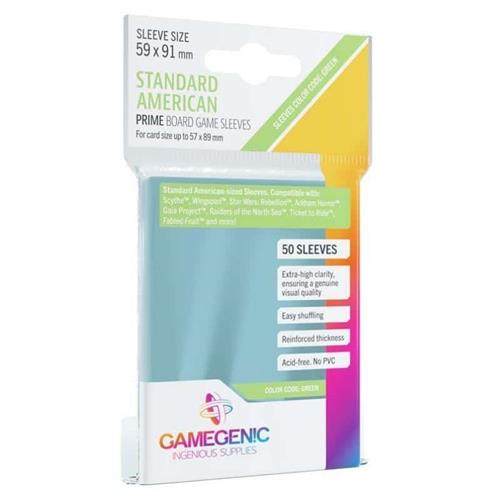 - Bij Spelhuis kun je Gamegenic Prime Standard American-Sized Boardgame Sleeves 59x91 mm Clear (50 Sleeves) kopen voor de prijs van € 3,50. Dit is vandaag de goedkoopste webshop.