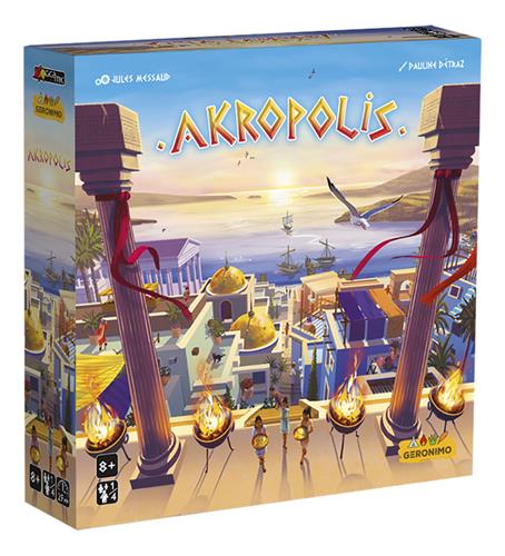 In Akropolis probeer je als architect in het oude Griekenland de meest imposante, en best geplande, stad te realiseren. Kies en plaats slim de tegels om huizen, tempels, markten, tuinen en kazernes te bouwen. Laat je stad zowel qua omvang als hoogte toenemen om ze over de andere te laten zegevieren. Verhoog haar prestige met een harmonieuze planning die voldoet aan de specifieke plaatsingsregels van elk wijktype. En zorg dat je de steengroeves niet vergeet, want zonder steen schop je het niet ver als bouwheer. Dat de beste architect, en de mooiste stad, mogen winnen!