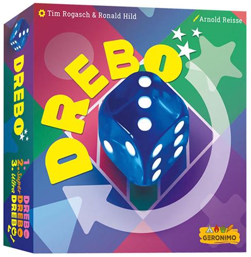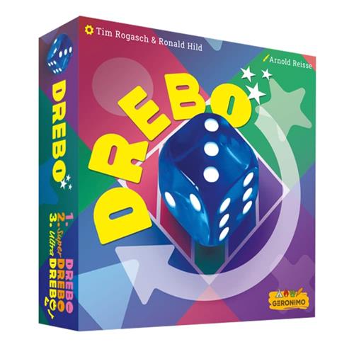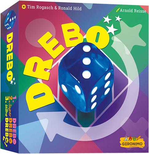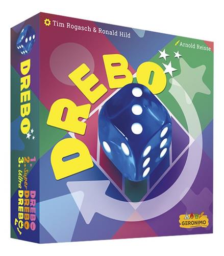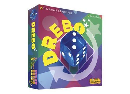 Geronimo Games brengt met DREBO een tactische variant van Bingo, zonder geluksfactor, dat velen zal boeien. In dit spel heeft iedere speler zijn eigen speelblad om de resultaten af te strepen. Het doel is om als eerste 3 Drebos (= rij- en kleurcombinaties) te behalen door de dobbelsteen over het centrale speelbord te duwen en kantelen. Elke beurt moet een vakje worden afgestreept dat overeenkomt met het kleurvak en het getal van de dobbelsteen. Met toegevoegde speciale acties is DREBO geschikt voor jong en oud!