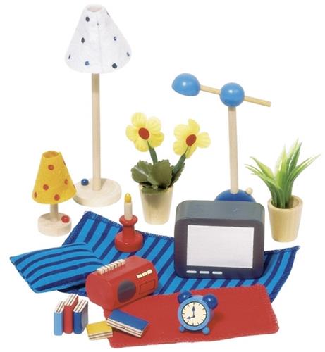 Met de Goki Accessoires Woonkamer, 17dlg. kunnen kinderen hun poppenhuisinrichting compleet maken. Deze accessoireset bevat 17 verschillende items die perfect zijn voor de woonkamer van het poppenhuis. De accessoires hebben een kleurrijke uitstraling en zijn gemaakt van hout, waardoor ze duurzaam zijn en lang meegaan.