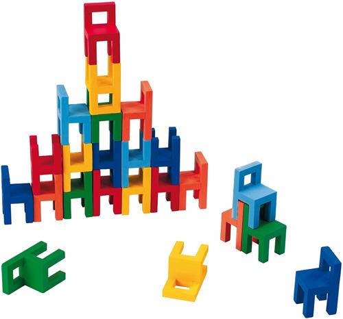 Stapel 24 stoelen zonder dat de stapel valt. Plaats de stoelen tactisch en kom zo hoog mogelijk!