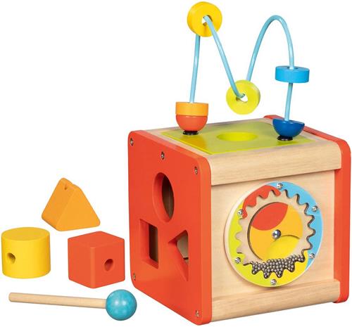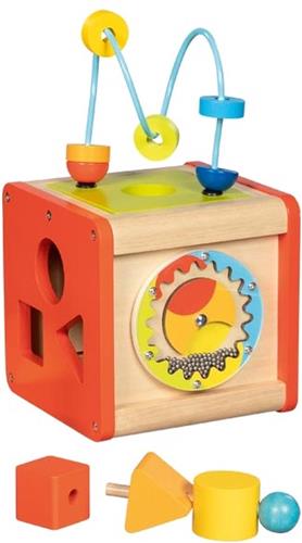 De Goki Houten Activiteitenkubus Beatbox en Motoriekspiraal is een fantastisch speelgoed voor kinderen vanaf 1 jaar oud. Deze activiteitenkubus biedt uren speelplezier en stimuleert de ontwikkeling van de motoriek en het denkvermogen van kinderen. Met kleurrijke elementen om te sorteren, een kralendoolhof om te verkennen en een xylofoon om muziek te maken, is er genoeg te ontdekken en te spelen.