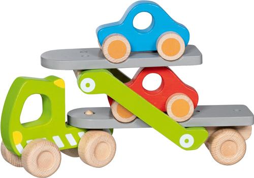 Goki Houten Auto Transporter met 2 Voertuigen
