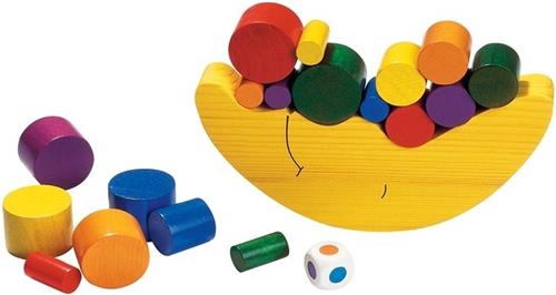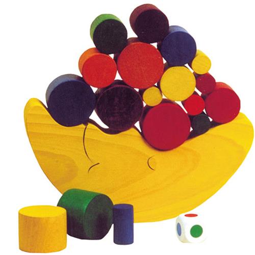Gooi met de kleurendobbelsteen en pak het bijbehorende ronde blokje. Stapel het blokje op de maan, maar pas op dat hij niet uit balans raakt! Deze vrolijk gekleurde set is gemaakt van hout en bevat een balansmaan, blokjes in verschillende groottes en een kleurendobbelsteen.
