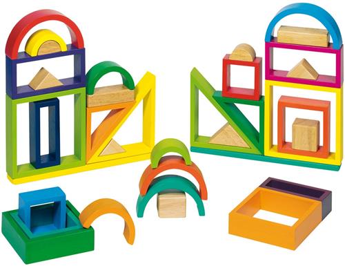 Laagste prijs € 28,48 voor Goki Houten Bouwvormen Fantasie, 38dlg is gemeten op 15-08-2025.