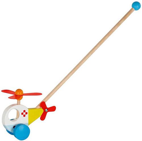 De Goki Houten Duwfiguur Helikopter is een prachtig speelgoed voor kinderen vanaf 18 maanden tot 3 jaar oud. Deze kleurrijke houten helikopter heeft geen batterijen nodig en bestaat uit 12 onderdelen. Met een lengte van 52 cm, een breedte van 17 cm en een hoogte van 13 cm is dit speelgoed van hoogwaardige kwaliteit en voorzien van een CE-markering.