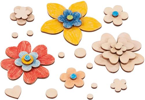 Met de Goki houten knutselbloemen set van 75 bloemen kunnen kinderen vanaf 3 jaar urenlang creatief bezig zijn. Deze vrolijk gekleurde bloemen kunnen beschilderd worden, aan elkaar gelijmd worden of op andere originele manieren worden versierd. De mogelijkheden zijn eindeloos, waardoor kinderen hun fantasie en creativiteit kunnen ontwikkelen.
