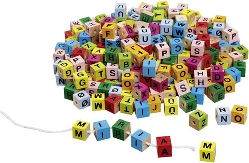 Maak je eigen unieke sieraden met deze prachtige Goki houten letter kralen! De set bestaat uit 300 kleurrijke vierkante houten blokjes met letters, perfect om je creativiteit de vrije loop te laten. Met deze kralen kan je je eigen gepersonaliseerde kettingen en armbanden maken. Laat je initialen of een speciale boodschap in je sieraad verwerken en draag iets unieks om je nek of pols.