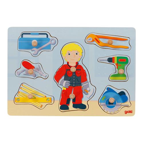 - Bij Fietsenwinkel be kun je Goki Houten Noppenpuzzel Klusjesman, 8st. kopen voor de prijs van € 12,99. Dit is vandaag de goedkoopste webshop.