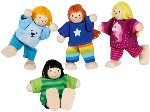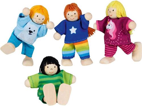 Goki Houten Poppenhuis Poppen Flexibel Kinderen, 4st.