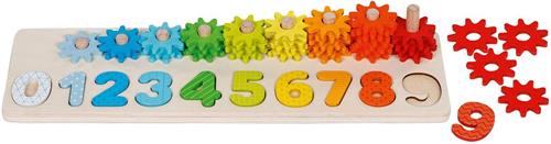 Laagste prijs € 17,59 voor Goki Houten Sorteerspel Leren Tellen met Tandwielen, 55dlg. is gemeten op 25-07-2025.