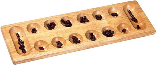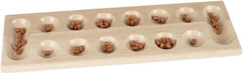 Verover al de steentjes van je tegenstander zodat hij geen zetten meer kan doen. Dit spel is puur afhankelijk van strategie, dus kun jij je tegenstander te slim af zijn? Kalaha behoort tot de oudste spellen uit de geschiedenis en is waarschijnlijk in het oude-Egypte bedacht. Materiaal: hout.