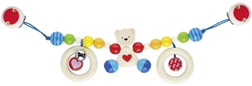 Deze schattige kinderwagenspanner van GOKI is niet alleen educatief, maar ook erg praktisch. Je kan hem gemakkelijk aan de kinderwagen bevestigen en hij zal je kleintje urenlang vermaken. Daarnaast is de hartenbeer gemaakt van hoogwaardige materialen en voldoet hij aan alle veiligheidseisen voor speelgoed. Zo kan je met een gerust hart genieten van gezellige wandelingen samen.