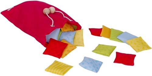 Met het memo kussentjes voelspel speel je verborgen memo. Het spel bevat namelijk uit 1 grote rode tas met daarin 20 zakjes (5 x 5 cm) die gevuld zijn met een bepaalde vulling, zoals balletjes. De spelers moeten ieder nu blindelings 2 zakjes in de grote rode tas voelen. Wanneer een speler denkt dat hij 2 zakjes heeft gevonden met dezelfde vulling mag hij de zakjes uit de tas trekken. Wanneer het patroontje op de zakjes overeenkomen mag de speler de 2 zakjes houden. Wie verzamelt de meeste zakjes? Dit voelspel stimuleert het tastzintuig.