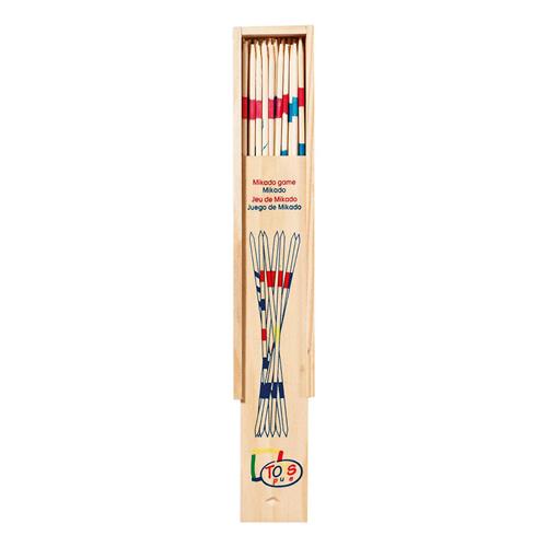 De Goki Mikado staafjes met een lengte van 17 centimeter zijn verpakt in een houten kistje met afmetingen van 19 x 4 x 2,5 centimeter. Deze mikadostaafjes zijn gemaakt van hout en wegen slechts 0.05 kg.