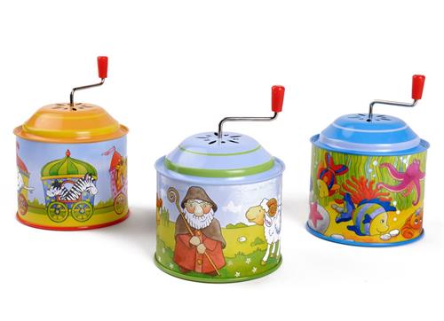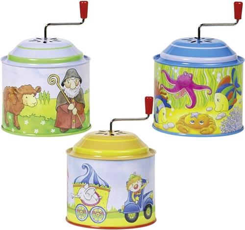 Draai aan de zwengel op dit blikken doosje en je hoort een muziekje. Dit Goki Muziekdoosje is geschikt voor kinderen vanaf 12 maanden tot 3 jaar. Het heeft een kleurrijk ontwerp in meerdere kleuren, en is gemaakt van stevig metaal. De afmetingen van dit muziekdoosje zijn 7,50 cm x 10,50 cm x 7,50 cm, perfect voor kleine handjes om mee te spelen.