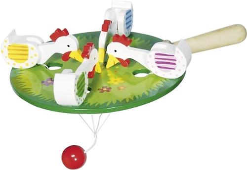 De Goki Pikkende Kippen Spel is gemaakt van hout en wordt geleverd door het merk Goki. Het spel is geschikt voor kinderen vanaf 2 jaar en heeft een aanbevolen maximum leeftijd van 99 jaar. Het pakket bevat 1 item met een gewicht van 0.14 kg. Dit behendigheidspel wordt gespeeld in het Nederlands en wordt geleverd met Nederlandse handleiding. Het kan gespeeld worden door 2 tot 4 spelers.