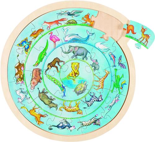Laagste prijs € 9,34 voor Goki Puzzel: dierencirkel 27-delig is gemeten op 13-01-2026.