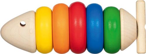 De GOKI Rijgvis - Fellix is een educatief spel dat kinderen op een leuke en speelse manier helpt bij het ontwikkelen van hun fijne motoriek en creativiteit. Deze vrolijke houten vis bestaat uit verschillende gekleurde schijfjes die aan elkaar geregen kunnen worden met het bijgeleverde koord. Door de schijfjes in verschillende volgordes te rijgen, kunnen kinderen zelf bepalen hoe de vis eruit komt te zien. Dit zorgt niet alleen voor urenlang speelplezier, maar stimuleert ook de hand-oog coördinatie van het kind.