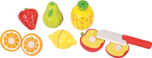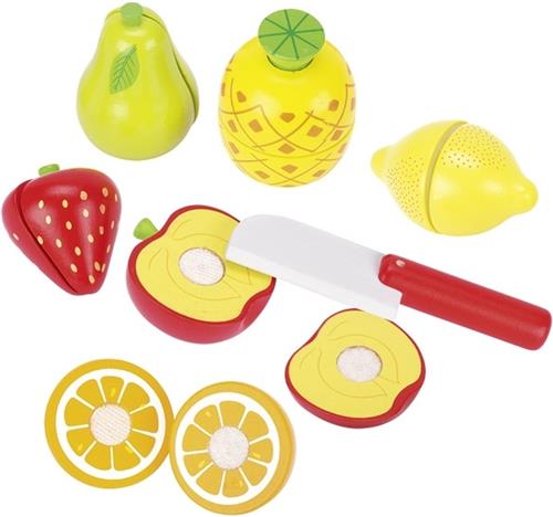 Met de Goki Snijfruit speelset kunnen kinderen eindeloos plezier beleven in hun eigen keukentje. Deze set bestaat uit 13 verschillende stukjes fruit die met het houten mesje door midden gesneden kunnen worden. Op deze manier leren kinderen spelenderwijs over verschillende soorten fruit en ontwikkelen ze hun fijne motoriek.