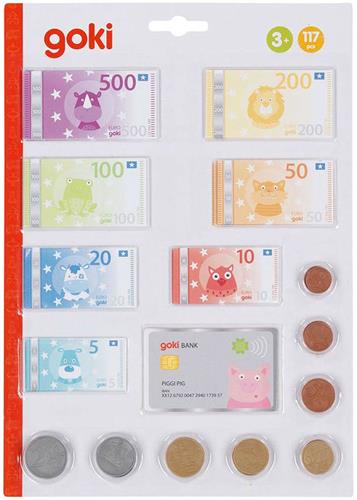 - Bij Bol.com kun je Goki Speelgeld Dieren met Creditcard en Muntgeld, 117dlg. kopen voor de prijs van € 6,99. Dit is vandaag de goedkoopste webshop.