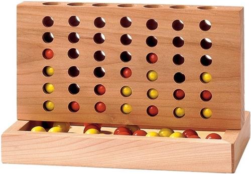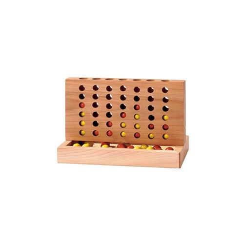 Het welbekende 4 op een rij, gemaakt van hout! Je speelt dit spel met 2 spelers. Kies een kleur en gooi om en om de balletjes in de gleuf. Blokkeer elkaars pogingen 4 op een rij te krijgen door jouw balletjes strategisch te plaatsen. Wie lukt het als eerste om 4 op een rij te krijgen? Diegene wint het spel! Geschikt voor kinderen van 6 tot 12 jaar oud. Het spel heeft een afmeting van 15,5 bij 8,5 bij 10 centimeter.