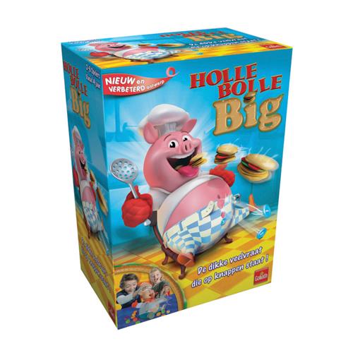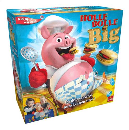 Holle Bolle Big is het leukste actiespel van dit moment Deze big krijgt geen genoeg van hamburgers. Wanneer hij teveel eet, ontploft zijn buik en springt zijn riem open Holle Bolle Big geeft volop plezier aan kinderen vanaf 4 jaar. Voor 2 tot 4 spelers.