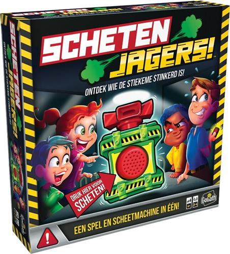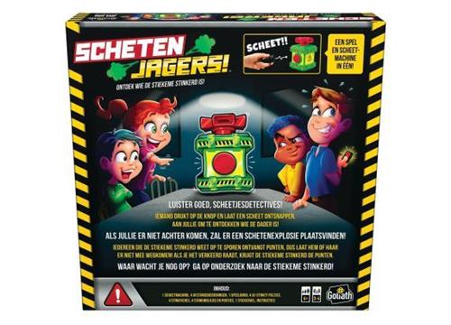 In het hilarische actiespel Schetenjagers van Goliath ontdek je wie stiekem scheten laat of probeer je er zelf mee weg te komen! Elke speler kiest een Stankwolkje en gaat de uitdaging aan om zijn scheten geheim te houden. De 'HOT'-afstandsbediening activeert de Scheetmachine, wat zorgt voor de nodige hilariteit. Misleid andere spelers om punten te verdienen of ontmasker juist de stiekeme schetenliefhebber. De speler met de meeste punten na 3 rondes wordt gekroond tot winnaar!