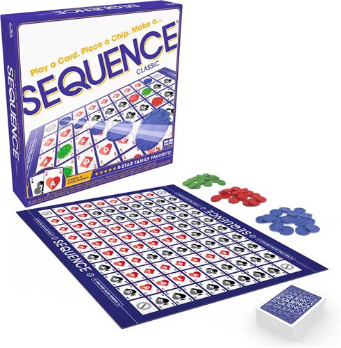 Sequence is een kaartspel waarin je je tegenstanders te slim af moet zijn en als eerste twee rijen van vijf fiches van dezelfde kleur op het speelbord te krijgen! In sequence speel je elke beurt een kaart en plaats je een fiche op het juiste vak op het bord. Hierbij moet je tactisch te werk gaan en hoef je niet elke keer aansluitend neer te leggen. Het is de bedoeling om uiteindelijk 2 rijen van 5 fiches op het speelbord te krijgen. Die rijen mogen horizontaal, vertiaal en diagonaal neergelegd worden. Eén van de spelelementen van Sequence is het dwarsbomen van je tegenstanders. Probeer met jouw kaarten de rijen van de tegenstanders tegen te houden.