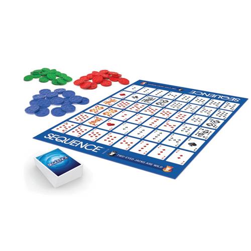 In Sequence speel je elke beurt een kaart en plaats je een fiche op het juiste vak op het bord. Hierbij moet je tactisch te werk gaan en hoef je niet elke keer aansluitend neer te leggen. Het is de bedoeling om uiteindelijk 2 rijen van 5 fiches op het speelbord te krijgen. Die rijen mogen horizontaal, verticaal en diagonaal neergelegd worden. Eén van de spelelementen van Sequence is het dwarsbomen van je tegenstanders. Probeer met jouw kaarten de rijen van de tegenstanders tegen te houden.