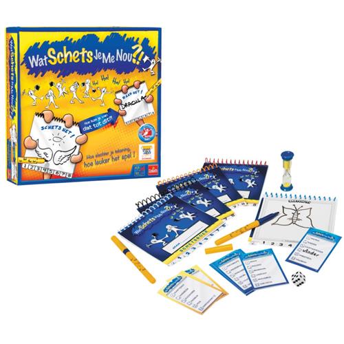 Wat schets je me nou?! Is het hilarische schets-en-raad partyspel voor de hele familie. Teken, raad, en teken het gegeven antwoord. Lukt het om het juiste thema te behouden in de gehele cirkel? Schets de omschrijving van je voorganger en omschrijf vervolgens wat voor schets je medespeler heeft gemaakt. Je zult zien dat de uitkomsten verrassend zullen zijn.
