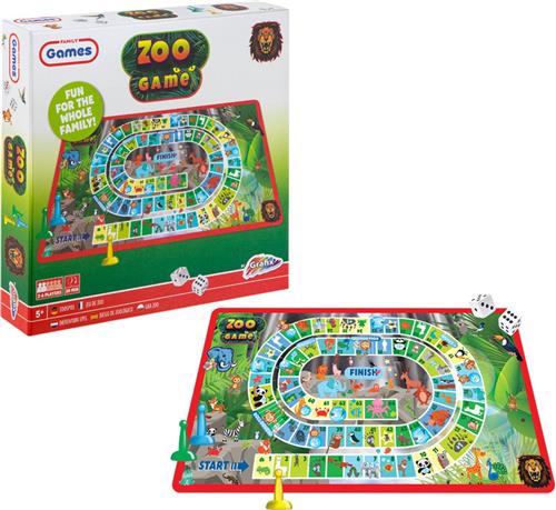 Dierentuin Spel: Elke pion stelt een dier voor. Alle dieren die mee doen aan het spel worden op het vakje 'start' gezet. De jongste speler mag het spel beginnen. De spelers gooien om de beurt met de 2 dobbelstenen en verplaatsen hun dier over het bord. De speler die als eerste met zijn dier de 'finish' bereikt, wint het spel. Om de finish te bereiken, moet het precieze aantal ogen gegooid worden, met één of twee dobbelstenen. Als je te veel ogen gooit, moet je het aantal ogen dat je te veel gooit terugspelen. Het is toegestaan om samen met een ander dier op een vakje te staan.