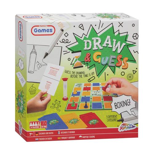 Met het Grafix Teken en Raad spel moet je voordat de zandloper is afgelopen, op papier uitbeelden welk begrip er op je kaartje staat. De andere spelers moeten raden welk begrip je bedoelt. Dit behendigheidspel is geschikt voor minimaal 3 spelers vanaf 7 jaar en de speelduur is ongeveer 30 minuten.